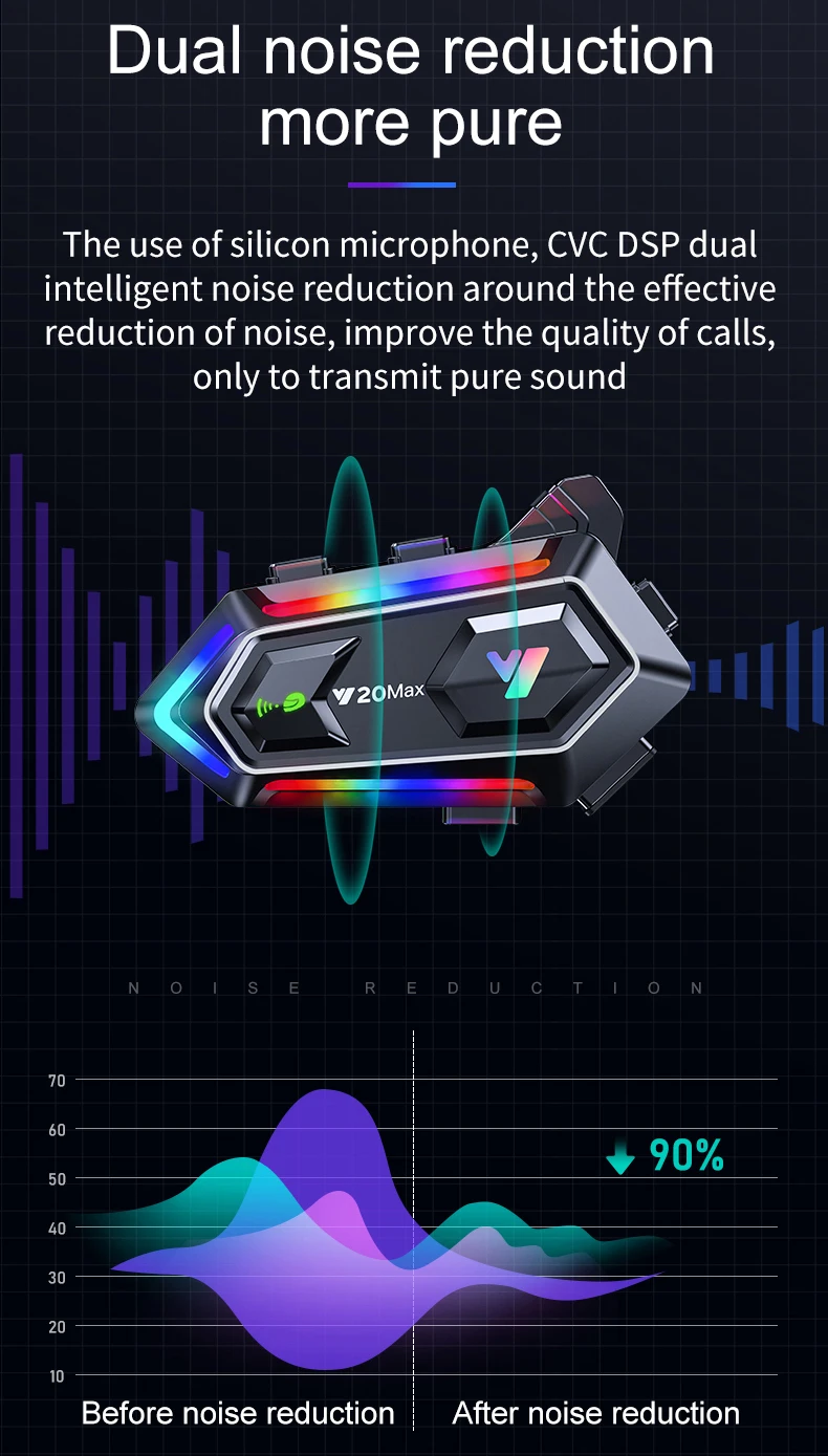 • Conectividade Bluetooth:Experimente a comunicação perfeita com o fone de ouvido Bluetooth Y20 MAX. Garante uma ligação estável até 500m, melhorando a sua experiência de condução.