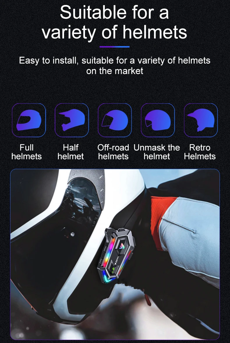 • Bateria incorporado:Equipado com uma bateria 1000mAh, este headset capacete garante um desempenho duradouro. Não há necessidade de recarga frequente, permitindo comunicação ininterrupta e prazer musical.